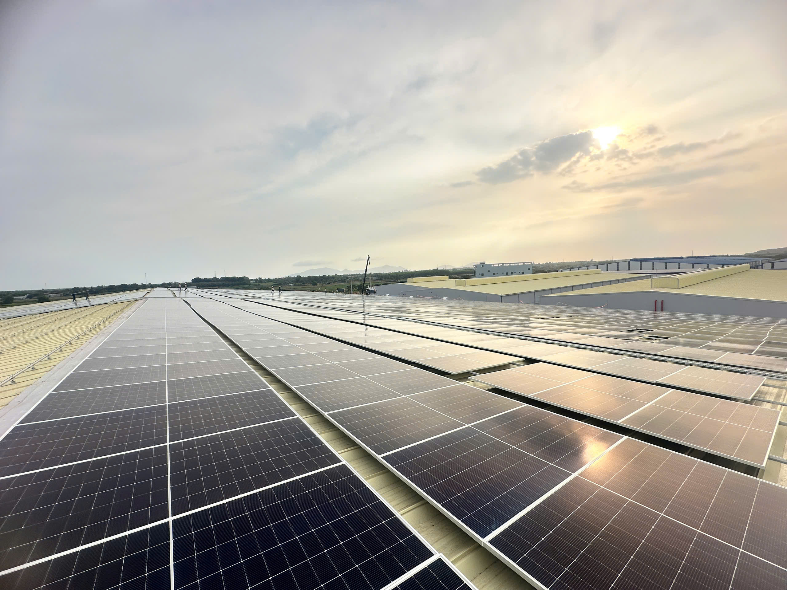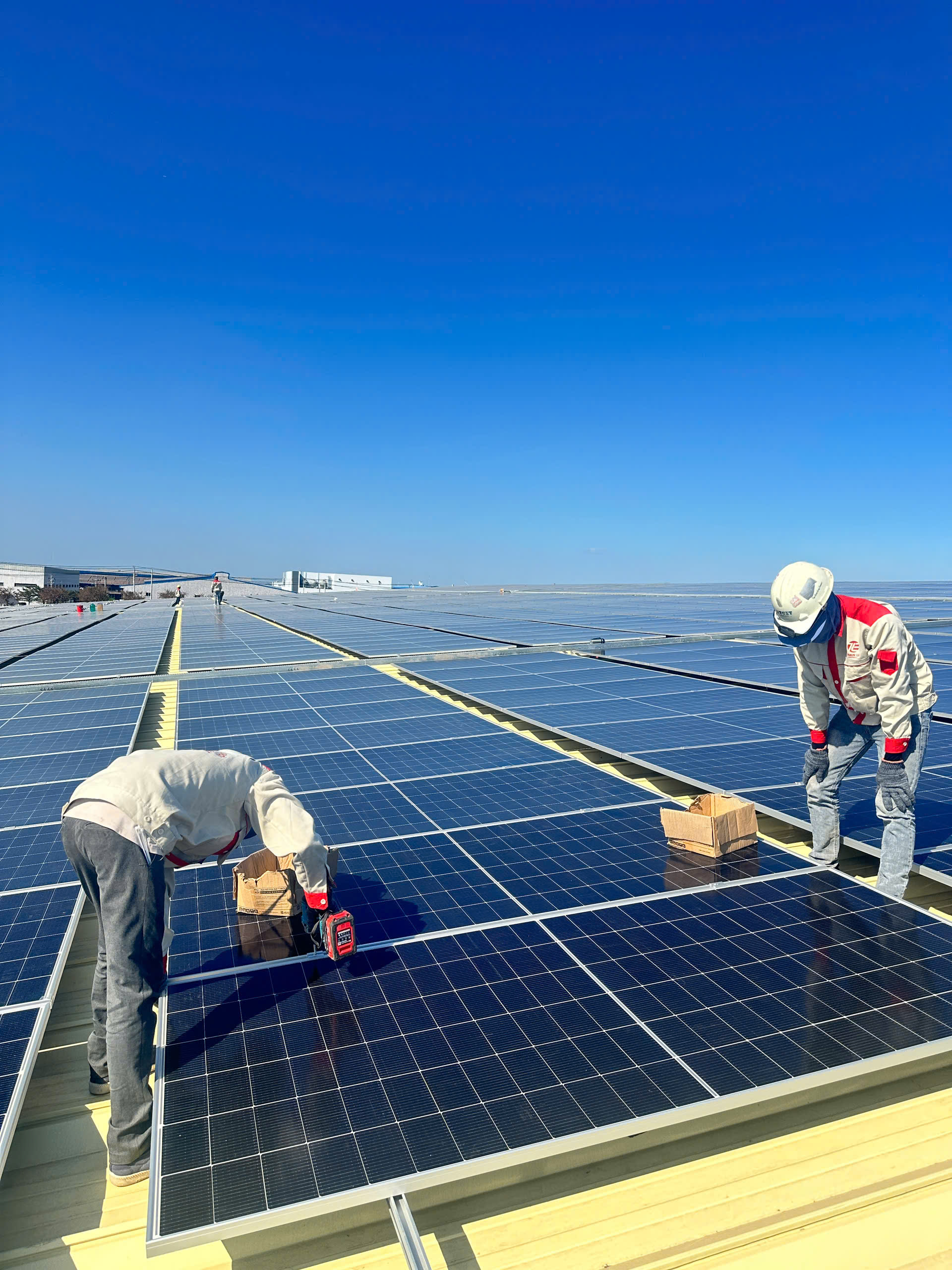 Tiến độ: Các “chiến binh xanh” đã phủ kín mái nhà xưởng, sẵn sàng vận hành an toàn và hiệu quả.
