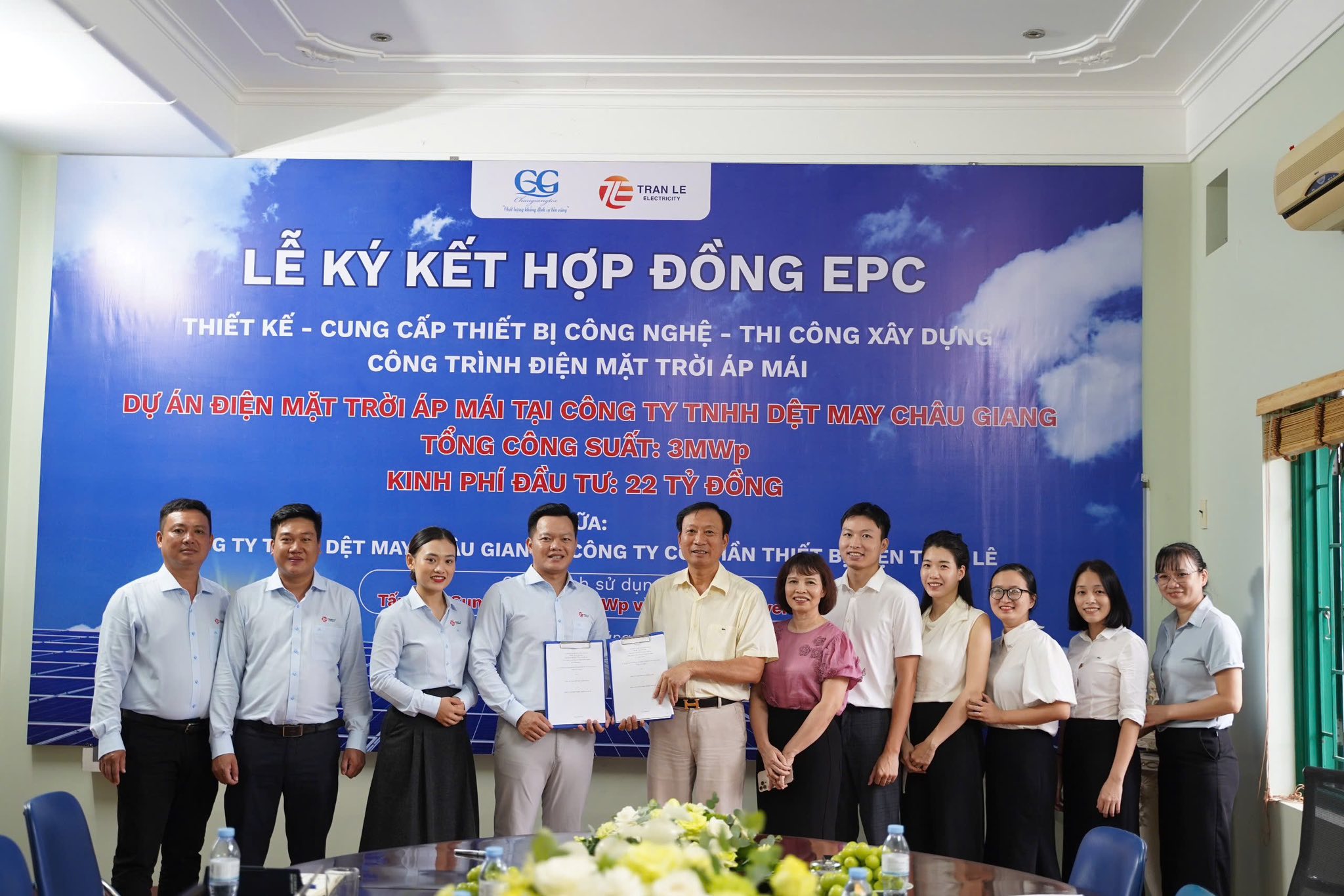 As the textile industry faces stringent “Greening” standards from international markets, transitioning to renewable energy has become a mandatory requirement. Recently, Tran Le Electricity, acting as the EPC General Contractor, officially commissioned Phase I of the 3 MWp Rooftop Solar Project at the Chau Giang Garment Co., Ltd. factory. This marks a significant milestone in the enterprise’s emission reduction roadmap.
