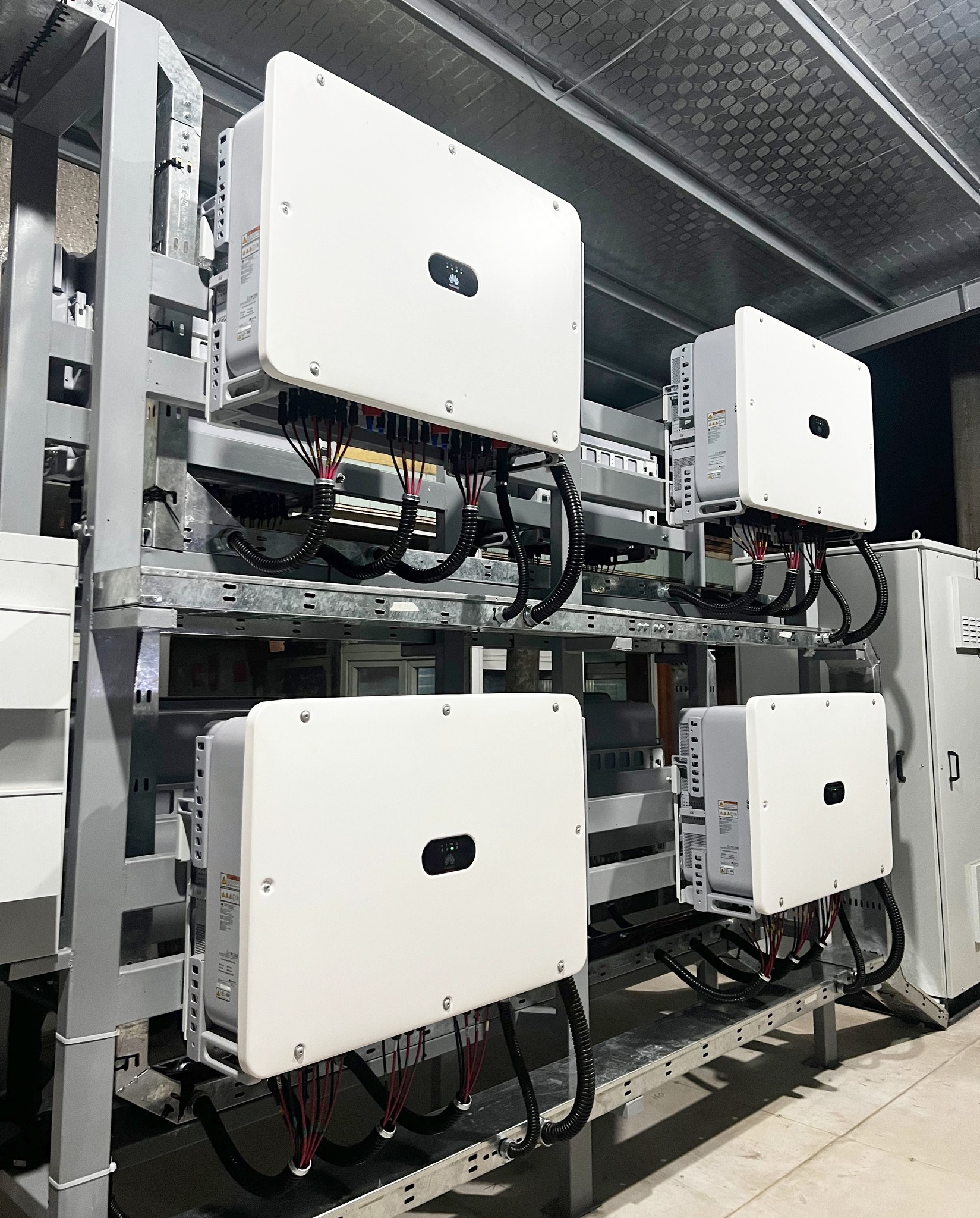 HUAWEI SUN2000-115KTL-M2 Inverters: The “heart” of the system is Huawei’s most powerful industrial inverter line. With 10 independent MPPTs and an efficiency of up to 98.6%, the device ensures the solar array always operates at its peak power point. Furthermore, integrated active safety features (AFCI) provide absolute fire protection for the workshop, ensuring this 3 MWp Rooftop Solar Project remains a secure asset.