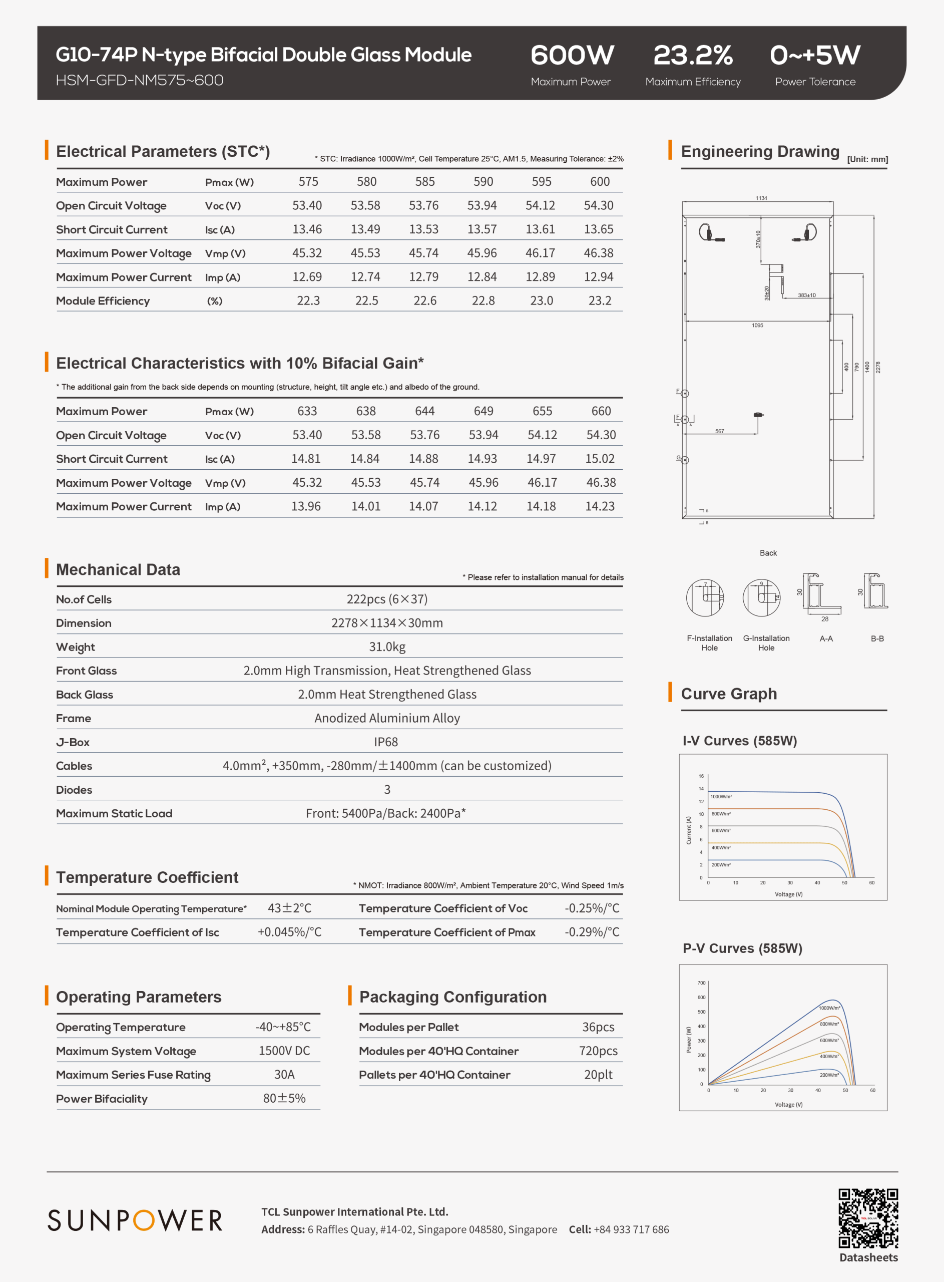 3. Technical Specifications: Sunpower 590Wp TOPCon & Shingling Panel