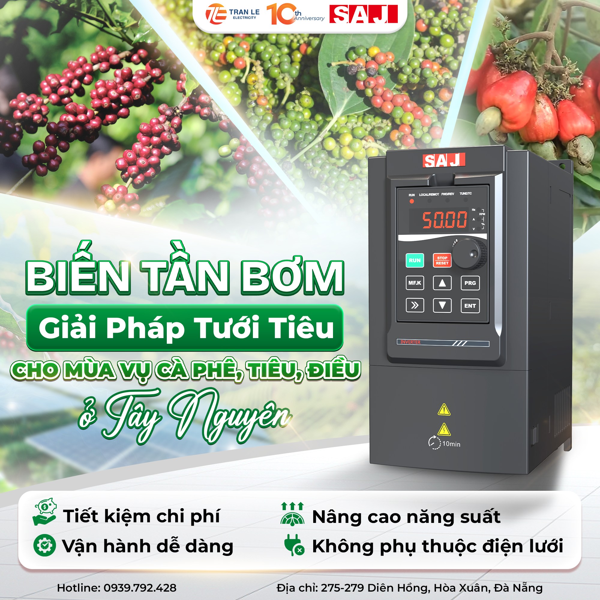 Bạn đang tìm giải pháp tưới tiêu thông minh và tiết kiệm? Liên hệ ngay với Trần Lê để được khảo sát và báo giá hệ thống biến tần bơm năng lượng mặt trời tối ưu nhất cho trang trại của bạn!
