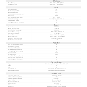 | Số lượng MPPT / String | 10 MPPT / 20 String |