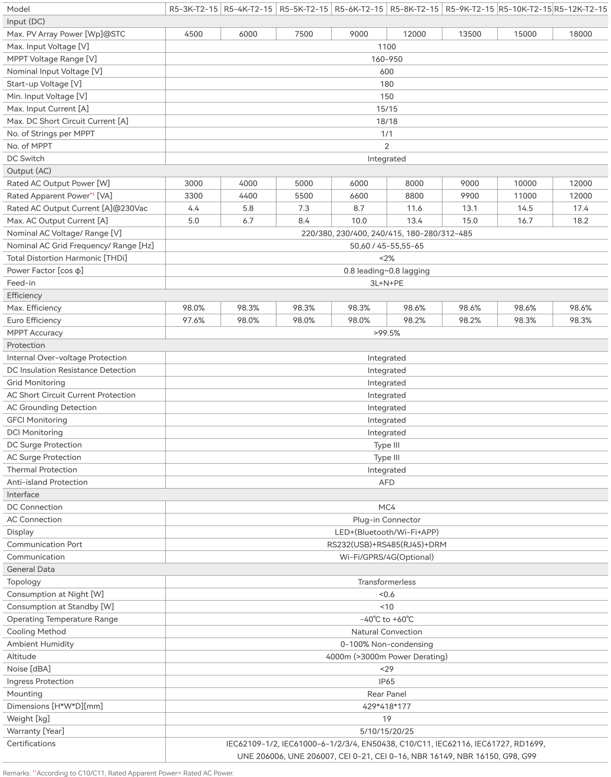 3. Thông số kỹ thuật chi tiết Biến tần hòa lưới SAJ R5 3-12kW