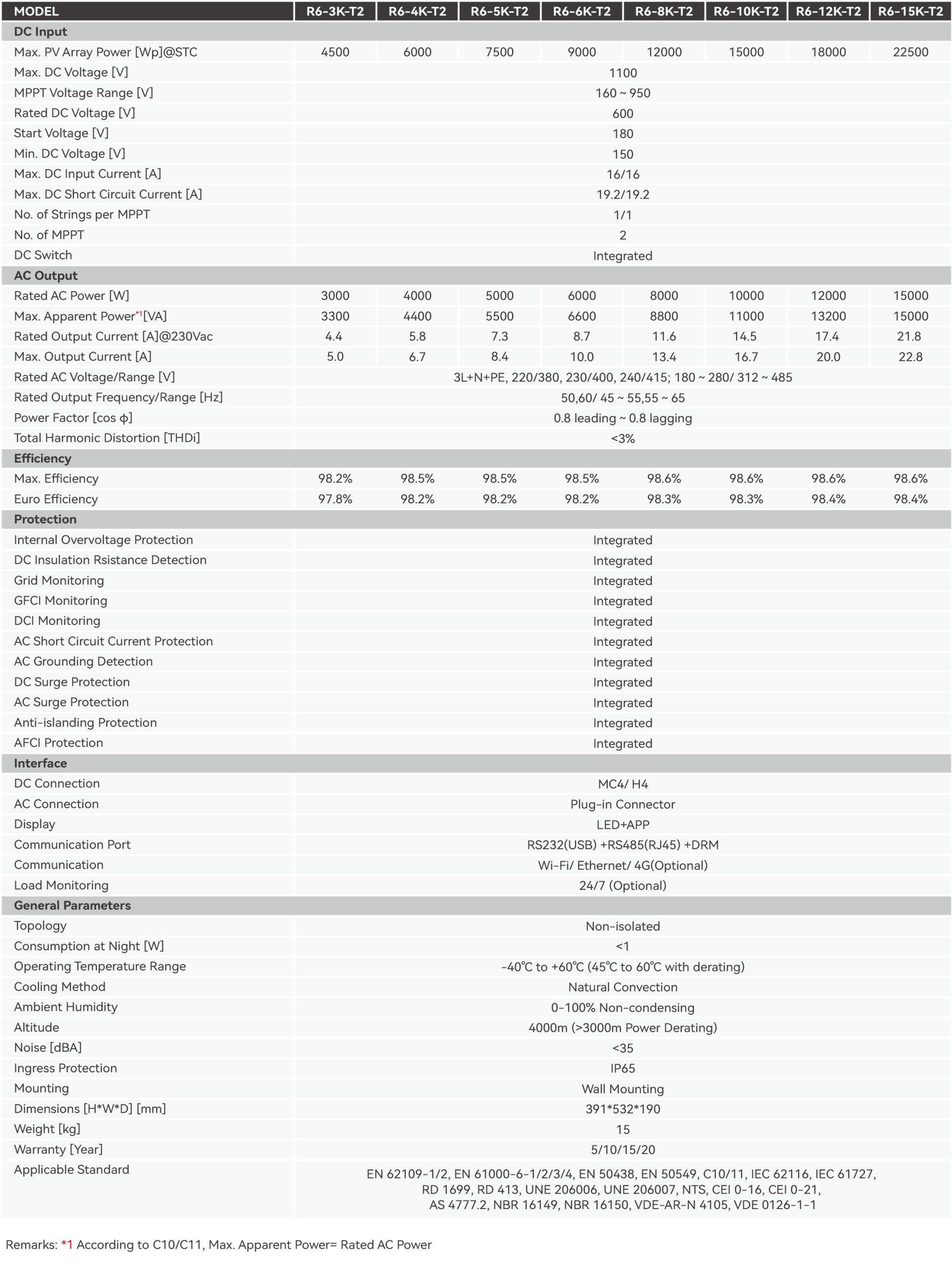 Tải Datasheet: R6 3-15K Three Phase On-Grid Inverter
