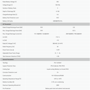 | Công suất PCS | 99.9kW – 125kW |