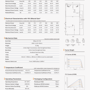 Độ bền cơ học: Cấu trúc Bifacial Double Glass (hai mặt kính) giúp tấm pin chịu được tải trọng gió lên đến 2400Pa và tải trọng tuyết 5400Pa, bảo vệ các cell pin bên trong khỏi các vết nứt vi mô.